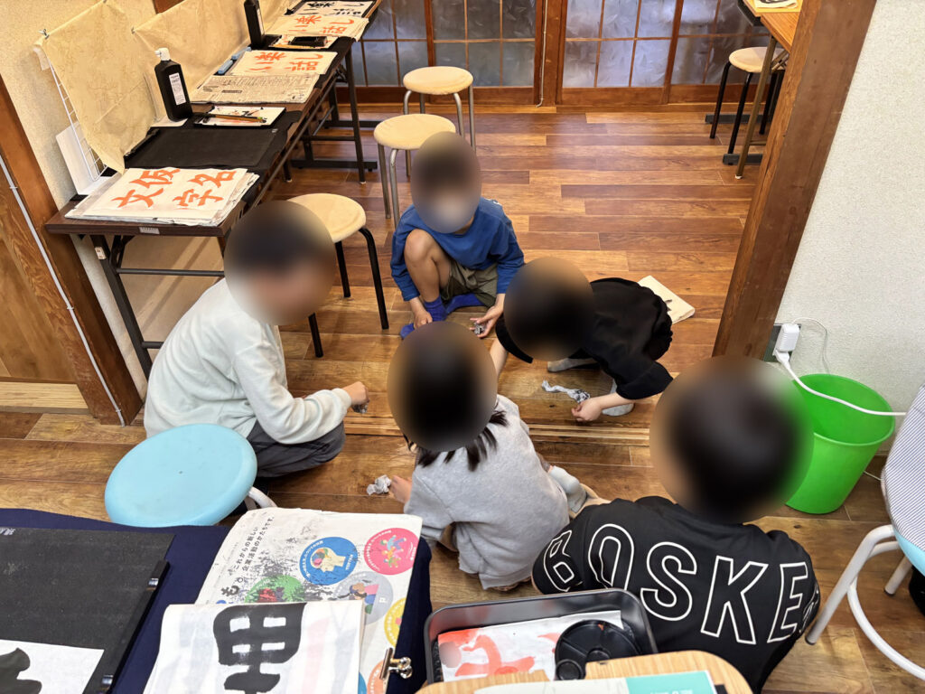 これは床にこぼしてしまった墨を拭きに集まって来てくれた子たち。